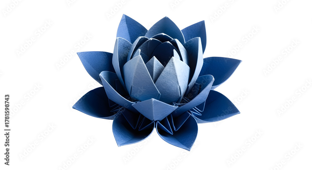 • Isolated blue origami lotus flower on white background for graphic design