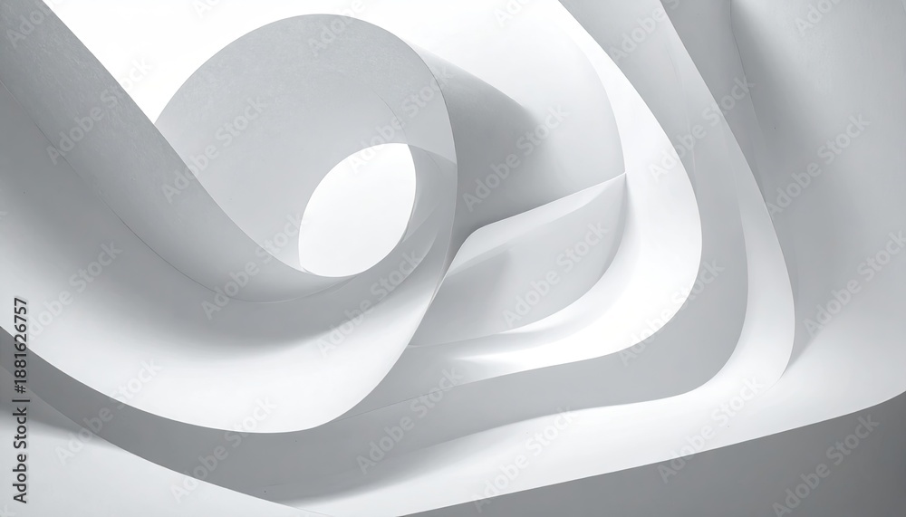 • Close-up of curled white paper creating abstract curves and shadows