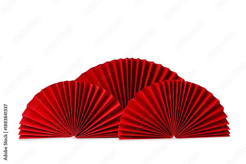 • Three red paper fans arranged in an elegant display, isolated, PNG