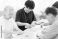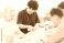 • Elderly people and male and female caregivers doing origami in a group home or nursing home