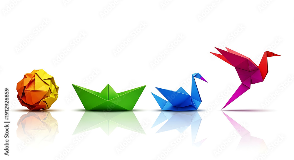 Naklejka Origami - Success transformation and Transform to succeed or improving concept and leadership in business... #1912926859