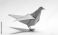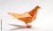 • An origami bird, folded from orange paper, sits on a white surface