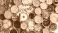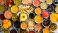 • A large set of pickled and canned foods on the background. Metal cans with canned vegetables, beans, fish, seafood and fruit. Top view.
