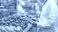 Naklejka Jedzenie - Worker in food processing facility checks inventory on tablet while surrounded by fresh... #1479367520