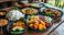 Naklejka Jedzenie - Close up view of authentic traditional Asian cuisine on rustic wooden tabletop in Sri Lanka #1605119280