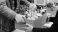 Naklejka Jedzenie - Volunteer giving food donation box to poor family hands grocery humanitarian aid charity support... #1816155264