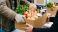 • Volunteer giving food donation box to poor family hands grocery humanitarian aid charity support community help hunger relief cardboard package vegetables fruit kindness social work delivery service