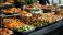 • A beautifully arranged buffet table showcases an assortment of vibrant dishes including salads, pastries, and savory entrees, inviting guests to indulge in the culinary experience.