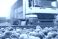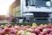 • Fruit and food distribution. Truck loaded with containers full of apples ready to be shipped to the market.