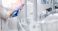 • Concept food industry banner. Factory worker inspecting production line tanker in of dairy factory with computer tablet