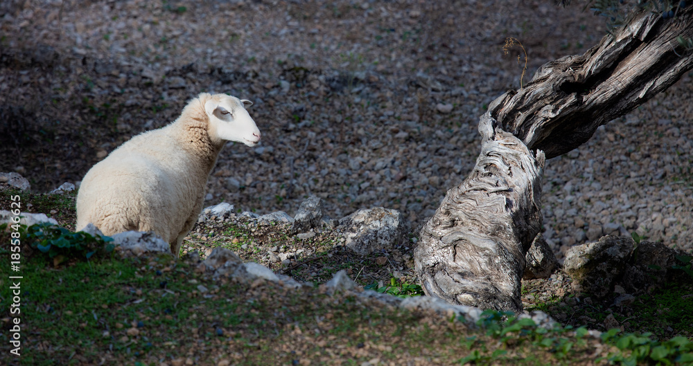Naklejka Kamień - Owca i Drzewo Oliwne , #1855846625