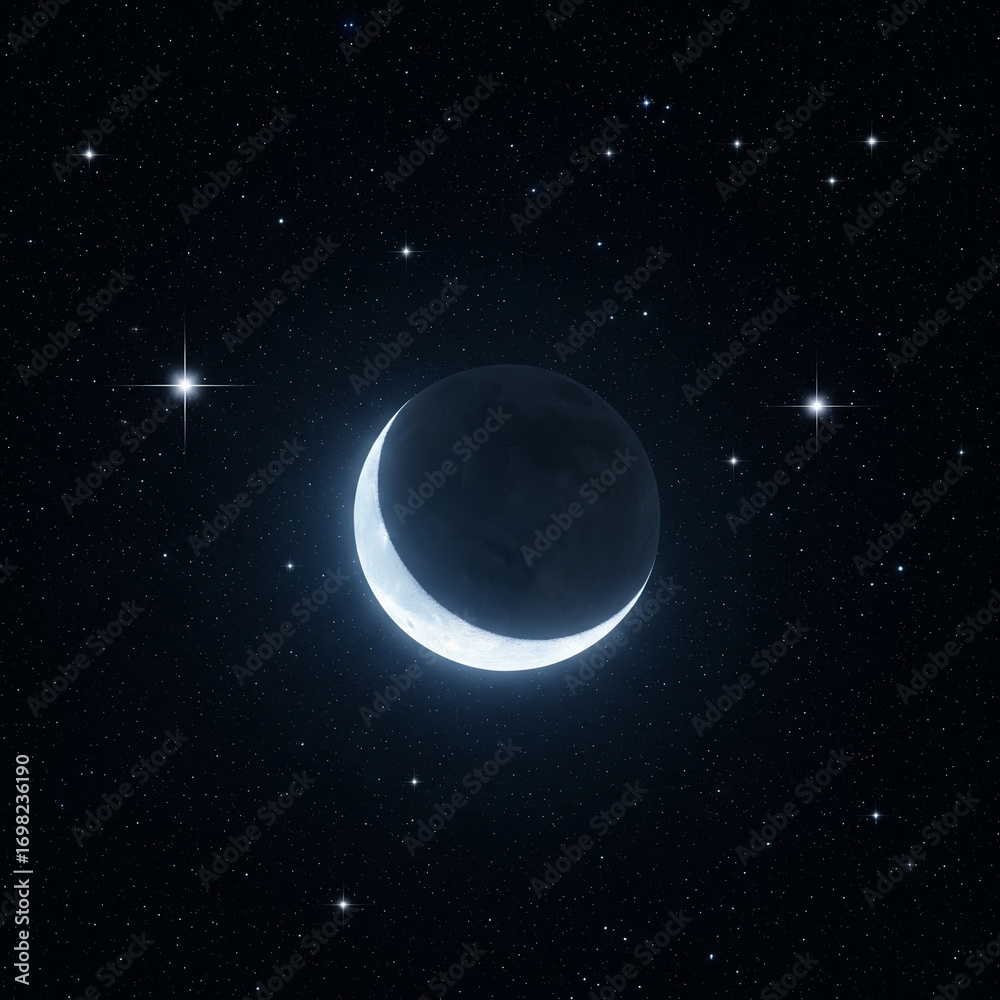 Naklejka Kosmos - night sky with crescent moon and stars #1698236190