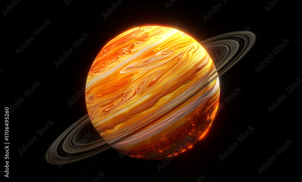 Naklejka Kosmos - Ognista planeta z pierścieniami. Koncepcja obcego świata, egzoplanety i podróży kosmicznych. #1706495260