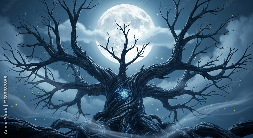 Naklejka Kosmos - big tree at night with a bright moon #1783987858