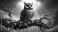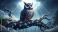 Naklejka Kosmos - fantasy illustration of a brown and blue owl with large yellow eyes, perched on a gnarled tree... #1815866337