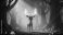 Naklejka Kosmos - illustration of a deer with glowing antlers in a forest environment. #1815866406
