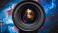 Naklejka Kosmos - Camera lens close up with reflection of space galaxy background #1945738755
