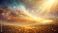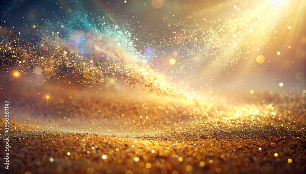 • Abstract golden cosmic scene with glowing particles and ethereal light display