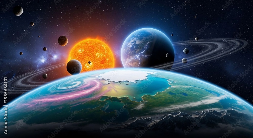 Naklejka Kosmos - Planets in space illustration #1955654101