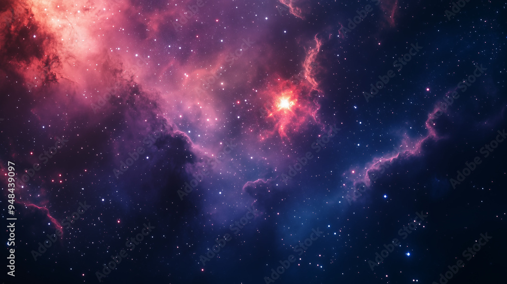 Naklejka Kosmos - Tło kosmiczne przedstawiające supernową i nebulę w tajemniczym wszechświecie, z gwiazdami i... #948439097