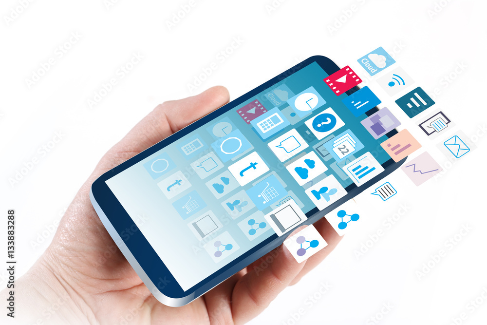 Naklejka Muzyka - Telefon trzymany w ręce. Aplikacje w telefonie #133883288