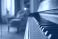 Naklejka Muzyka - Detal brązowego, drewnianego pianina w salonie. Klawiatura na pierwszym planie, a w tle rozmyty... #1783495958