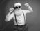 • Święty Mikołaj w słuchawkach na uszach i okularach przeciwsłonecznych tańczy w rytm muzyki