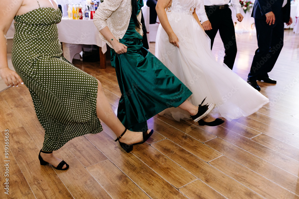 Naklejka Muzyka - Zabawa weselna, goście i taniec na parkiecie z panną młodą podczas wesela #919165653