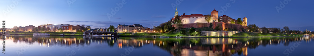 Naklejka Panorama - Poland, Krakow, Wawel hill at night, panoramic view #270163408