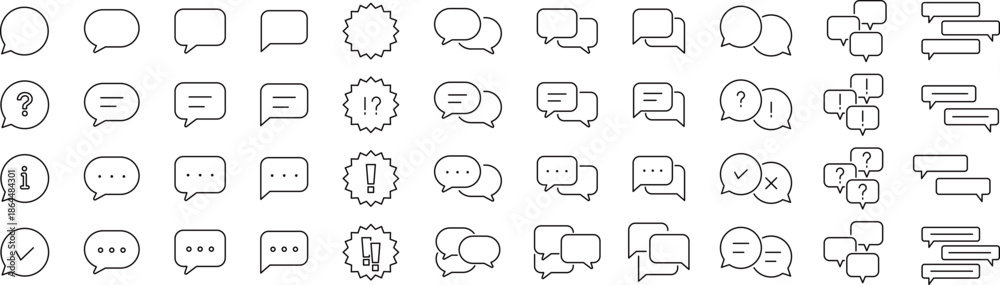 • ベクターでモノクロの吹き出しに関する線画アイコンセット