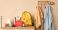• Emergency backpack with necessities on chest of drawers in hallway