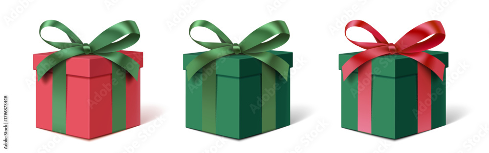 • Set of decorative Christmas gift box isolated on white. Holiday decoration. New Year sale collection. Vector stock illustration. Not AI