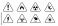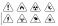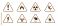• Warning triangular caution shapes signs with various danger symbols: hazard, flammable, radiation, slipping, electrical, biohazard, toxic, explosion