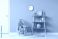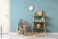 • Interior of stylish room with clock, armchair and shelf unit