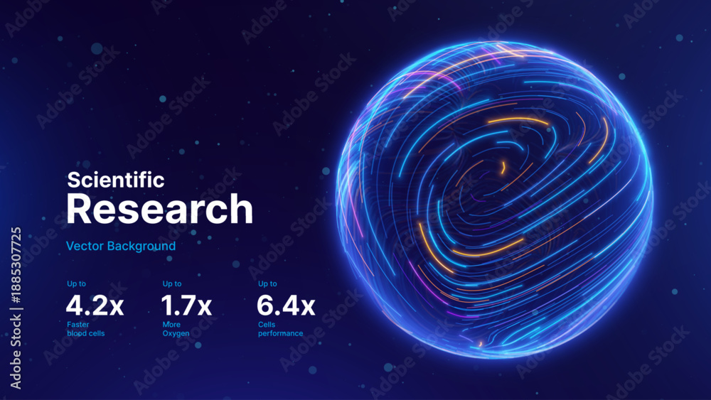 • Tech Neon Lines Energy Orb. 3D Sphere Science Globe With Abstract Glowing Lines Representing Microbiology, Cell Research, or Nanotechnology On Dark Blue Background. Vector Illustration.