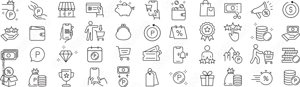 • ベクターでモノクロのポイントに関する線画アイコンセット