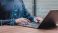 Naklejka Folklor - Engineer hands operating laptop keyboard display glowing blue industrial interface plant control... #1947030059