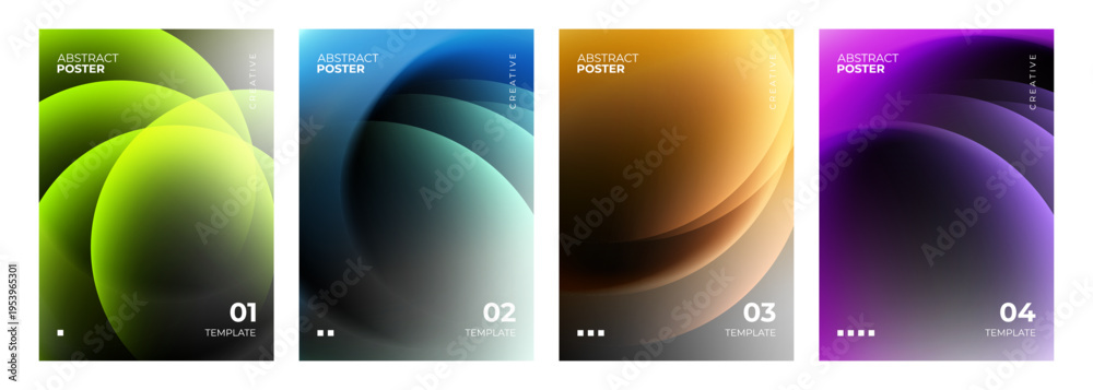 • Vibrant colored circles. Blurred spheres. Color gradient round shapes. Set of abstract backgrounds for creative graphic design. Vector illustration.
