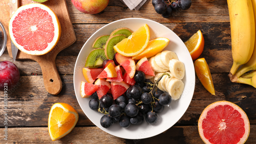 Naklejka Owoce - fresh fruit salad in bowl #389329228