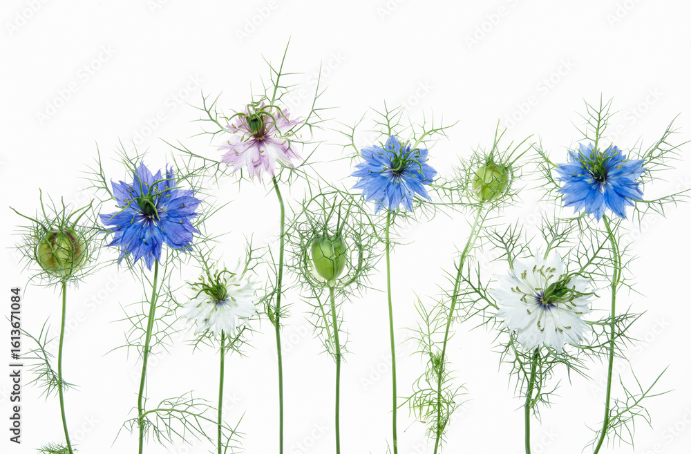 Naklejka Kwiaty - Kwiaty czarnuszki na białym izolowanym tle. #1613671084