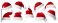 • Collage with Santa Claus hats, closeup objects. Isolated on transparent background. Christmas and New Year celebration