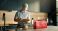 Thief in a black mask swiftly snatching a brown parcel from a doorstep, pilfering a delivered package from a residence Dopasuj i kup Naklejka