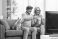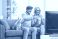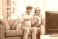 • Happy mature couple with their dog enjoying a movie