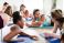 Naklejka Pejzaże - Women enjoying group yoga session. #1948459411
