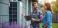 Naklejka Pejzaże - Technician shows homeowner tablet data near heat pump. They discuss system operation and... #1952169689