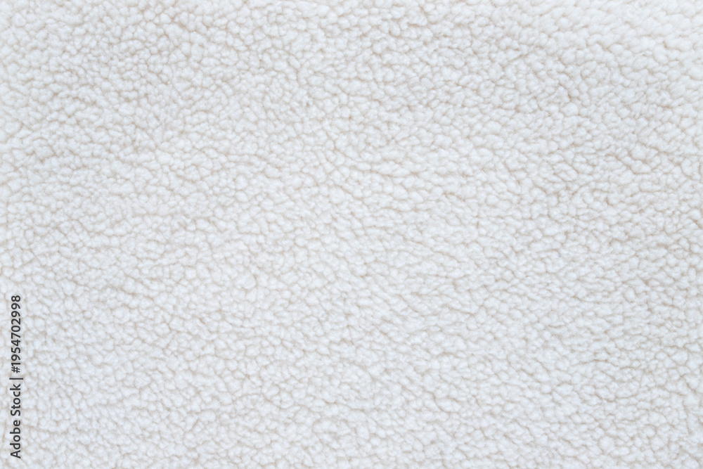 • white fluffy sherpa fleece fabric texture background with soft wool material for winter clothing blankets or textile cozy mockup