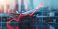 • Conceptual image of rising airfare driven by higher fuel prices, with an airplane silhouette above stacked coins and an upward red graph line against a blurred city background