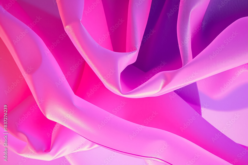 • Close-up abstract flowing pink and purple satin fabric texture