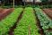 • Lush organic vegetable garden featuring various crops in neat rows outdoors