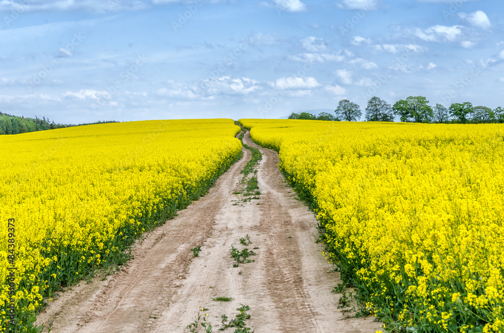 Kwiaty - rzepak, droga, pole rzepaku #84389373